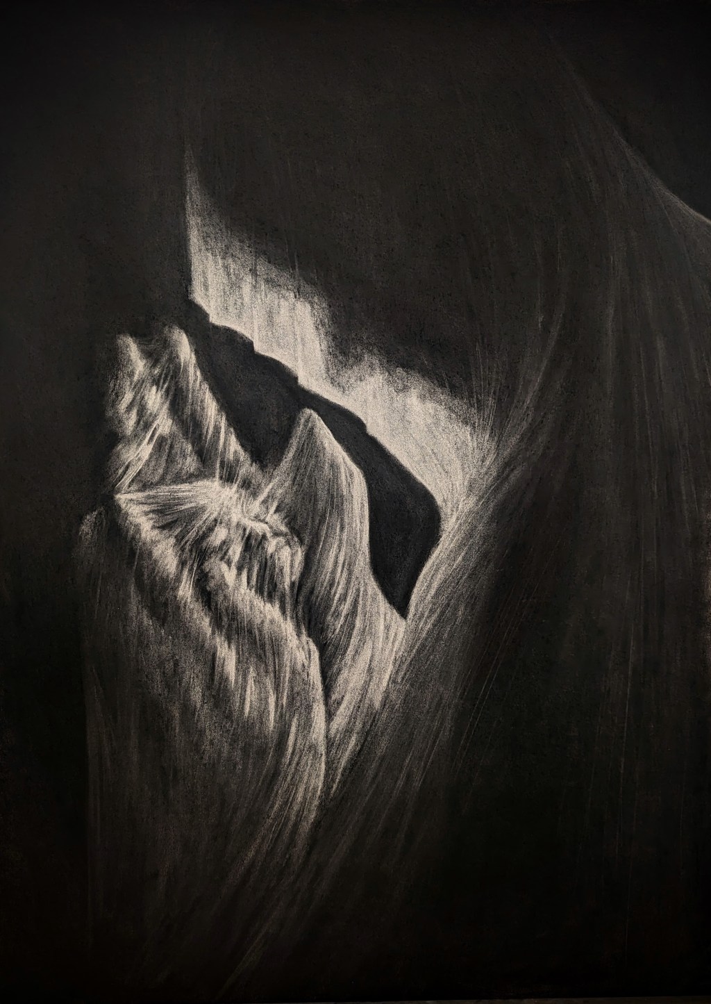 “It was my hands that made your form. The foundations of my house are your foundations. The sinew of my shroud is your sinew. From me you were gifted the first of your selves, and it will be I who embraces you when you are no longer whole.” 22″x30″ charcoal